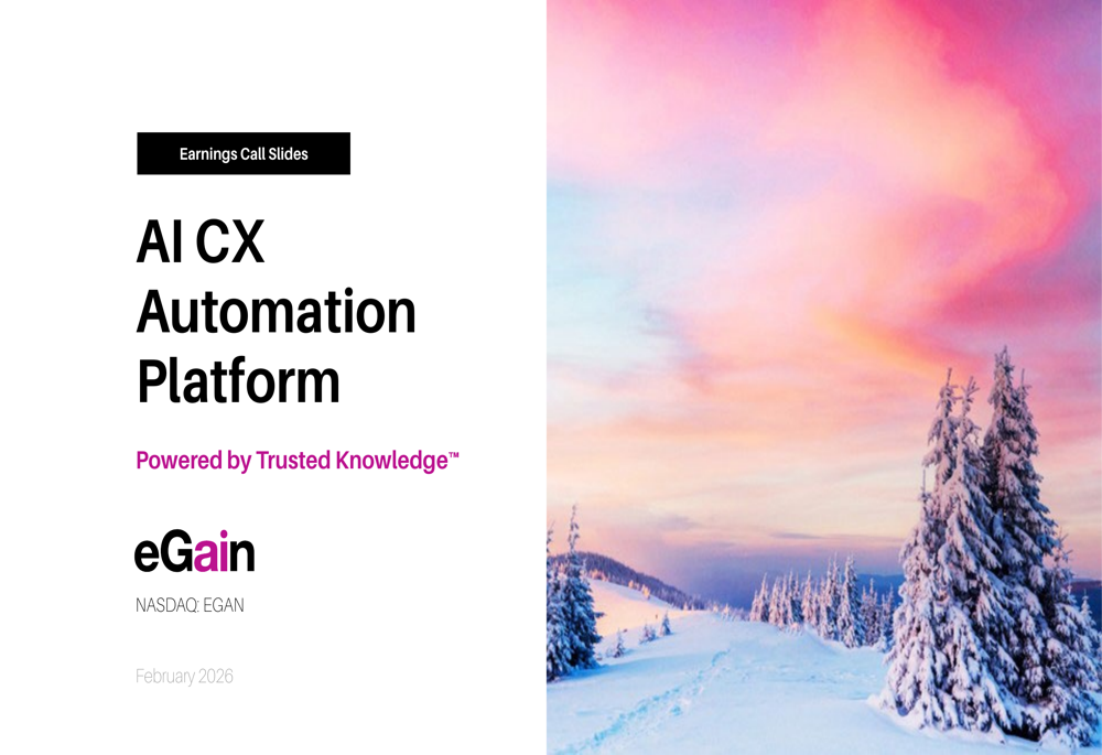 eGain Corporation engages in the development, license, implementation, and support of its customer service infrastructure software solutions in North America, Europe, the Middle East, Africa, and the Asia Pacific. It provides eGain AI Agent, which helps businesses to deploy enterprise-grade agentic solutions built on knowledge and guided actions; eGain AI Knowledge Hub to centralize knowledge, policies, procedures, situations, and best-practices, as well as guided and personalized answers to customers, agents, and field staff; and eGain Conversation Hub for scalable capabilities of digital-first interaction management within a modern, omnichannel desktop. The company also offers a cloud-based platform through subscription basis; professional services, such as consulting and implementation services, training services, and managed services. It serves customers in various industry sectors, financial services, the public sector, healthcare, telecommunications, and other highly regulated industries. The company was incorporated in 1997 and is headquartered in Sunnyvale, California.